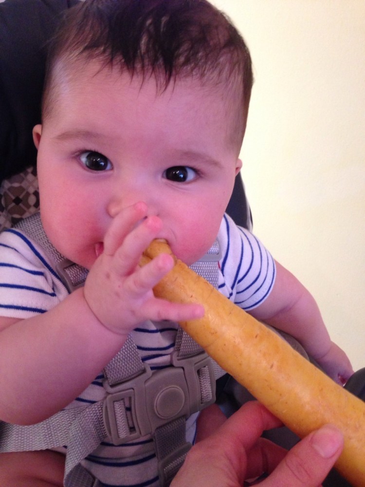 Posted byMichelle PApril 3, 2014December 22, 2019Posted inUncategorized It just so happens that a large, organic carrot is the perfect teether. Go figure. Share this: Share on X (Opens in new window) X Share on Facebook (Opens in new window) Facebook Like Loading... Related