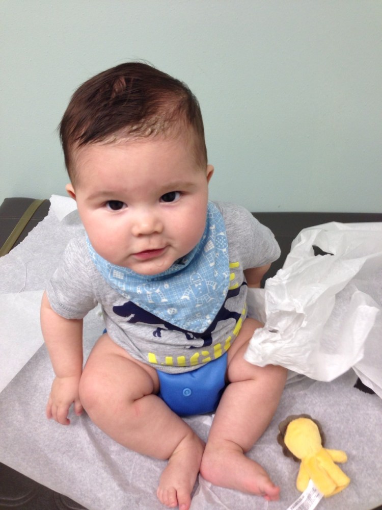 Poor little guy got his 6 month shots today. 😦 But look how big he is, sitting up all by himself!