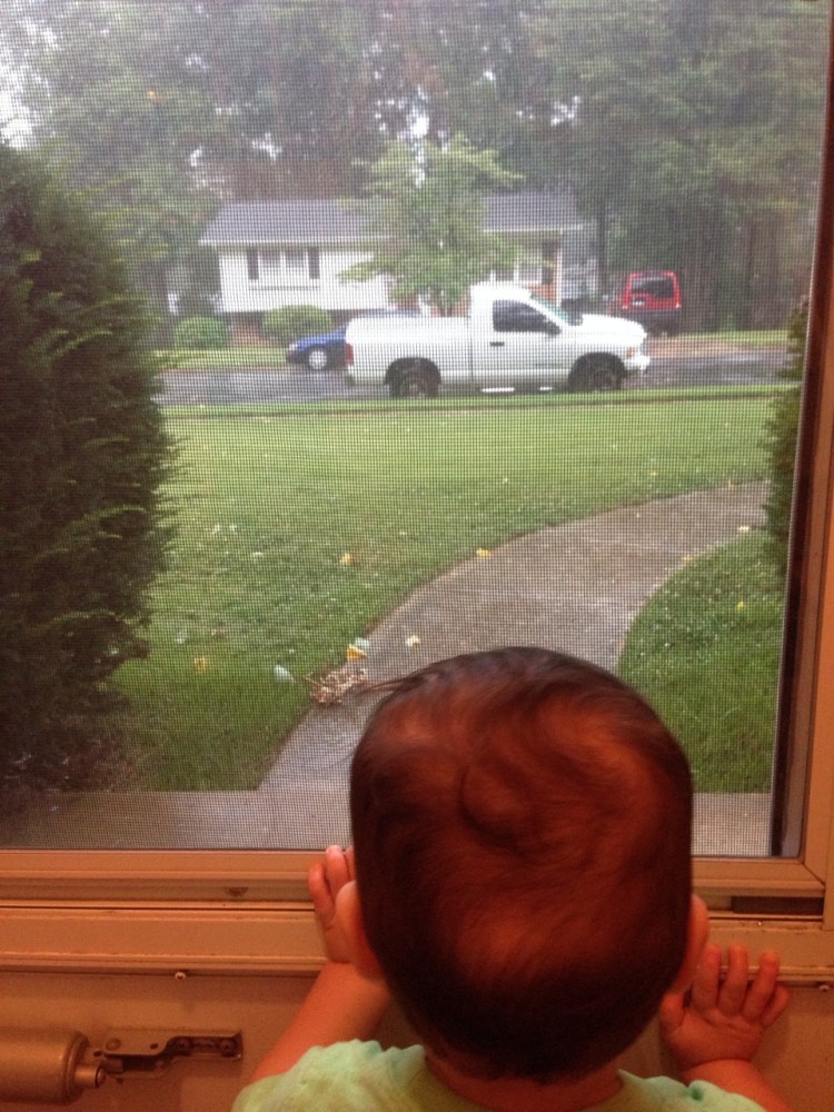 Posted byMichelle PJuly 3, 2014December 22, 2019Posted inUncategorized Watching the thunderstorm while waiting for his crazy dad to get back from his run. Share this: Click to share on X (Opens in new window) X Click to share on Facebook (Opens in new window) Facebook Like Loading... Related