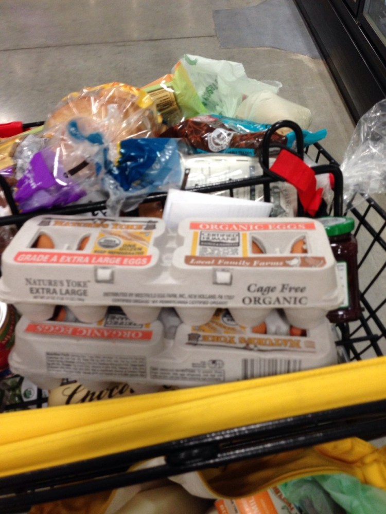 Our first glimpse of groceries for a growing boy. Yes, that’s TWO dozen eggs for the week!