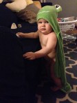 He is taking plenty of steps, but still prefers to hold on to something to get around. He has his top two front teeth as well now, and eats whatever Ben and I are having for dinner.