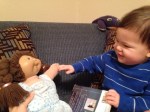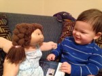 Hanging out with Aunt Jennifer’s Cabbage Patch Doll. She is still rocking that sweet eighties braid (the doll, not Jennifer)!!