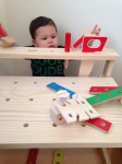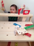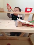 How Max currently enjoys his workbench. He loves it, Steph and Karen! He can pull out all the tools now and put them back. He primarily uses it as a stacking surface, though.