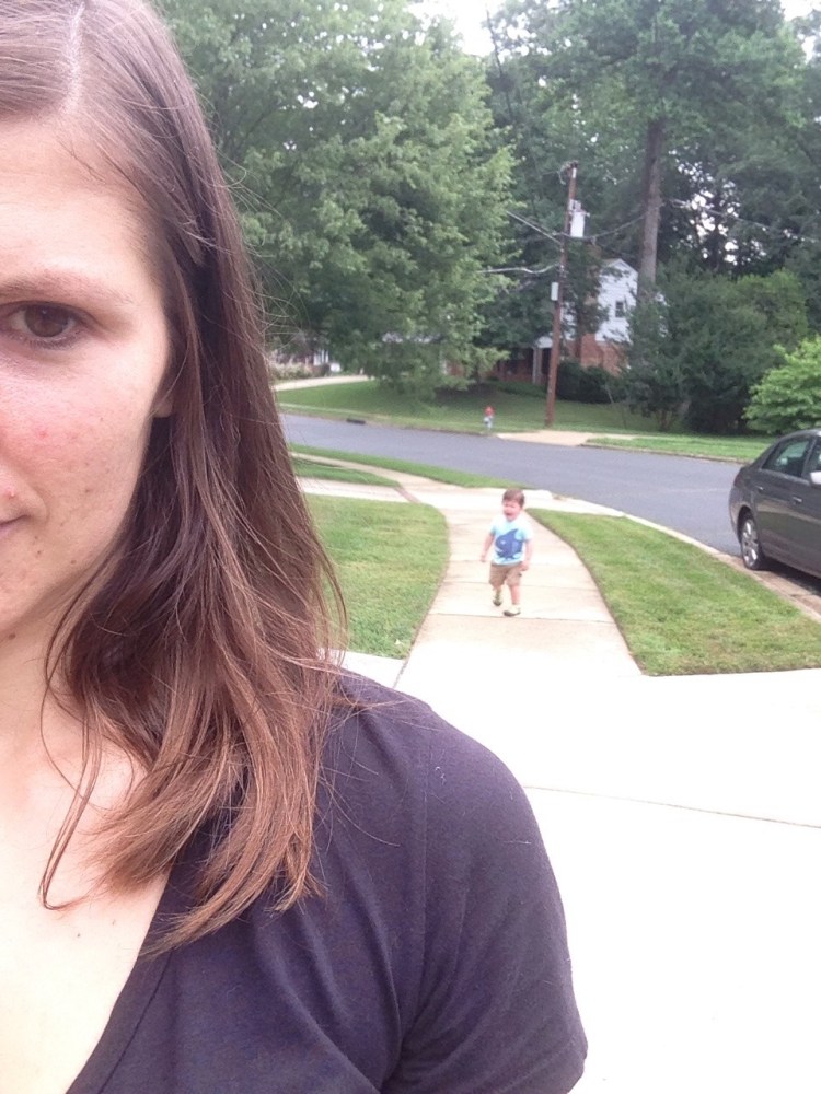 If you zoom in, you’ll see a distraught Max trailing behind me. Every day, we walk to the end of the street and every day, he suddenly can’t walk another step as soon as we turn around to go home. Until we get home and he miraculously summons the energy to race back down the street again. Yesterday I made him walk back and he cried the whole time.