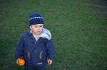 We went for a very chilly walk after getting our groceries this morning. Max carried that orange through the entire store, only surrendering it briefly to hand it to the cashier, and then to climb up on this wall. I couldn’t bear cutting it up for his lunch after he had essentially adopted it as his pet. That’s some pig… orange?