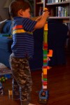 We do a lot of building with legos (duplos) lately. The last one is at the gym, where the wonderful Ms. Elena feeds his passion.