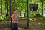 Fun at the playground on a beautiful day. “Little Max Penguin” sat in the mulch, went down the slide, climbed the stairs, and played on the swing. So did Max.