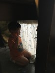 Some pictures from the hotel life – view of fireworks over the water from our room, and fort building. We were there 10 days, and we are happy to be in our new home.