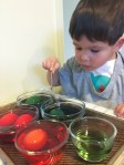 We’ve been doing some informal pre-schooling around here based on a curriculum called The Peaceful Preschool, and both of us are loving it. He’s such a joy to teach. We’ve dyed eggs for “E” week and learned about mixing colors. We do a lot of counting with beans. And Scrabble tiles are good for letter bingo!