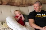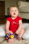 Our little sunshine. She sleeps through the night about half the time, naps like a champ, and loves/hates the swaddle. She does crunches whenever we lay her on the floor, trying to get up. She can sit up on her own but falls over often. She prefers to stand and does a full body wave when she’s happy, which is most of the time. If we do her little dance, she smiles and does it back. This girl is such a joy!