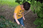 Max doing the daily inspection of his “tree house.” Daddy won’t decorate the house with Christmas lights since our little would-be engineer can’t keep his hands off anything to do with lights or electronics, so he decorated his tree house. The purple berries are his lights and he frequently requests to go check on them to make sure they aren’t out. He collects the berries and replaces any that he declares have gone out. He also likes to collect spare branches he finds and bring them to his tree house.