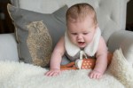 Nine months is fun! 5 teeth, crawling at light speed, almost pulling up, babbling all day long, you are one busy girl. You still love brother something fierce and love to pull his hair (and mine). You are quick to laugh and quick to yell. You DEVOUR black beans and bananas. You are not pleased about the gate we installed, but rush it at an impressive clip if you notice it’s been left open. You love your Animals book and always turn to the last page to pet the rabbit. You’re back to sleeping through the night frequently and love love love sleeping/face-planting on your wool blanket seen here.