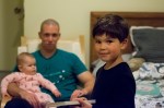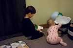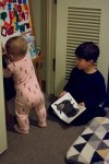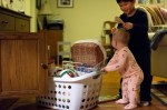 And a glimpse of bedtime. It’s hard for Max to nail Hazel down for the bedtime story, so he just follows her around, reading. Also, the laundry basket is not, as it may appear, a random assortment of toys, but a boat full of necessities.