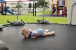 Chaturanga to updog. Hazel’s yoga practice is coming along nicely. No yoga mat, no problem. She just uses a neighbor’s upside down trampoline.