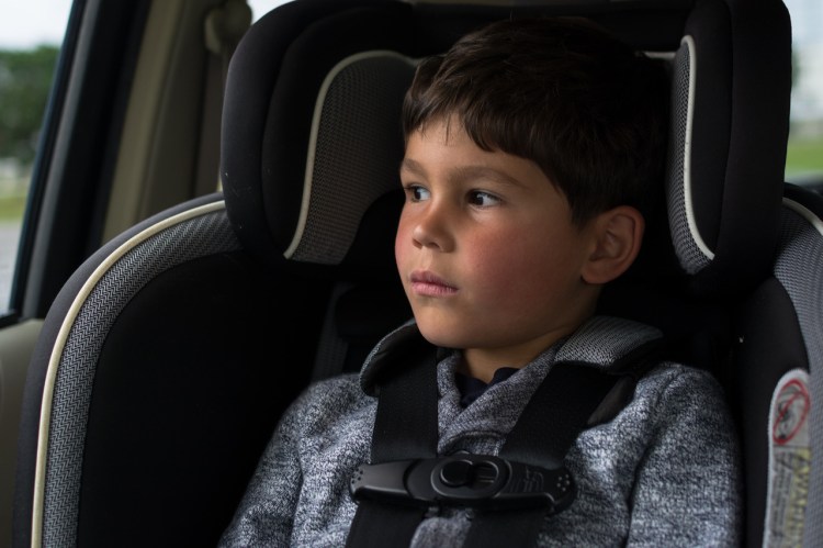 Late February. Did you ever see such an old soul in a car seat?
