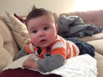 Big day for little Max… He finally rolled over onto his tummy! He is pretty impressed with himself.