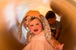 All the neighborhood kids were going down the big hill in our backyard on boxes, so Hazel found a roller slide seat and tried to join in.
