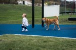 Mid-October. Taking the neighbor’s dog for a walk. One of them is enjoying it much more than the other.