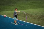 Mid-October. More tire swinging in his exploring vest.
