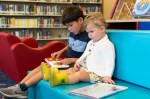 Mid-October. Best buddies at the library.