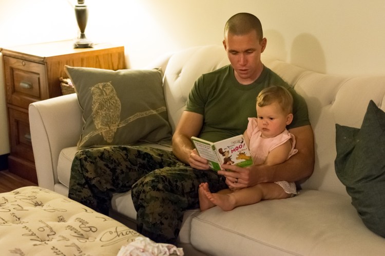 Late August. Reading a favorite book with Daddy.