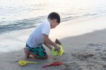 September. Dinner at the beach, then play until the sun sets.