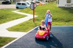 Early August. These bouncing balls appeared on our playground and stayed for a few weeks of fun before disappearing.