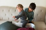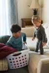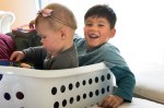 Early August. Sailing the high seas in a laundry basket. Max is good to his skipper.