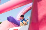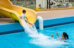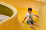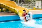 Late July. Max got to go down the water slide at the pool after passing his swim test. He was so proud.