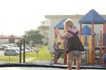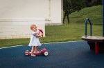 Late July. Hazel found an unattended scooter at the playground. Score!