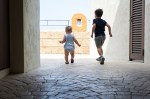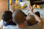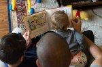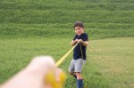 Late July. Just exploring around American Village. Max was just learning to tie his shoes.