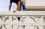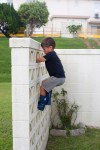 Late July. Exploring in the backyard and scoping out the construction next door.