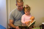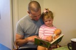 Late March. Reading a book with Daddy and Baby Caroline.